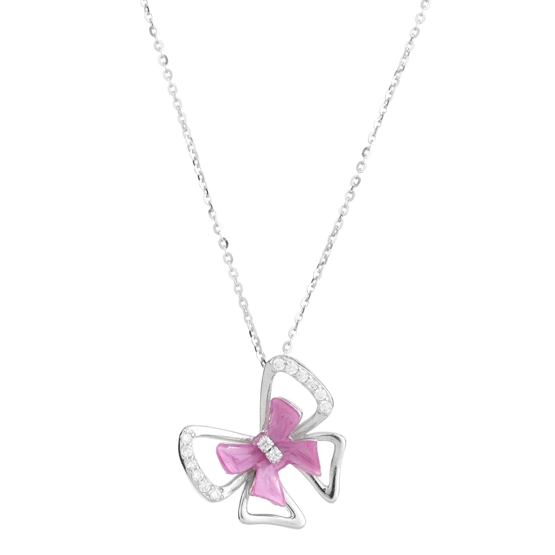 Pink Butterfly CZ Pendant Set in 925 Sterling Silver