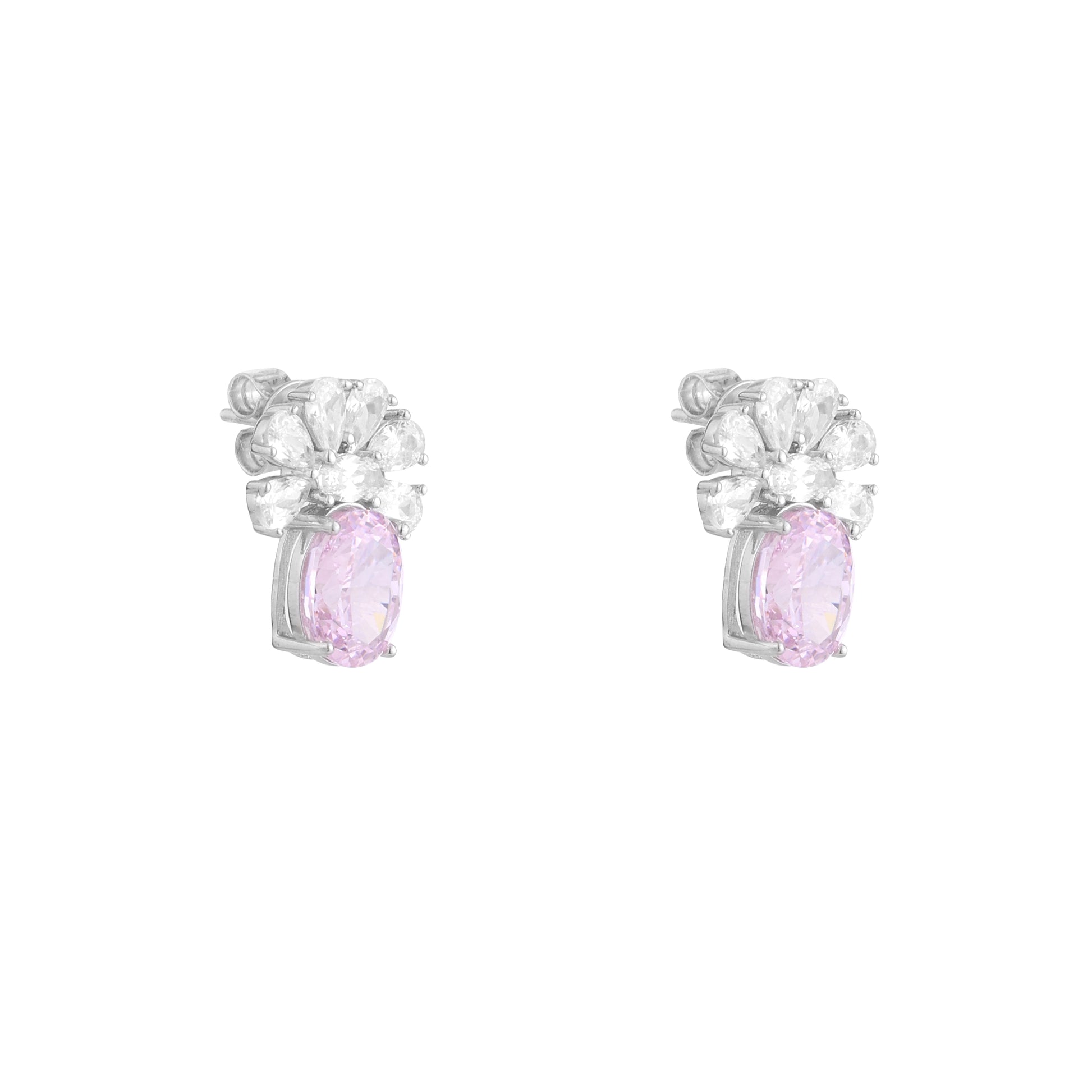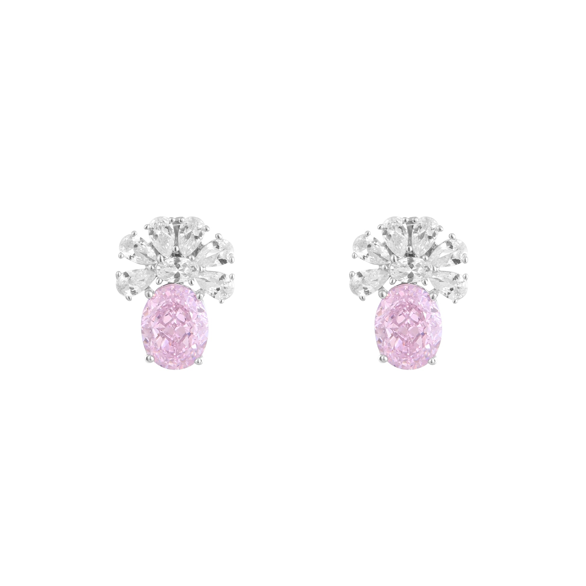 Delicate yet striking, the Blush Bloom CZ Stud Earrings are designed to add a soft sparkle to your everyday elegance. Crafted in 925 sterling silver, these studs feature a graceful floral cluster of shimmering cubic zirconia stones, paired with a blush-pink oval centerpiece that catches the light beautifully.